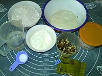 Main dough: 25 grams of gluten flour, 100 grams of rye flour, 2 125 grams of fermented seeds, 2.5 grams of salt, 1 gram of dry yeast, 0.5 grams of maltose, 78 ml of water, 20 grams of walnuts