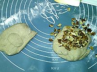 Divide into 2 equal parts, add walnuts to one of the portions and knead well