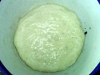Knead well. Leave at 22-25 degrees and let ferment for 15-20 hours