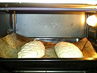 Transfer to a preheated baking sheet, spray water on the surface, put in the oven, medium layer, heat up and down 220 degrees, and bake for about 25 minutes