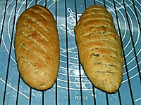 Tailor 2: French rye bread French bread leaven made with 100 grams of flour only takes 9 grams to make the second leaven. Only half a amount of rye bread is used, only 4.5 grams are used. The finger-sized yeast makes the second dough become light and fluffy after 15-20 hours of long brewing… The amount of rye flour is the largest of the three types of bread. The dough is the darkest in color. The original has three flavors: walnut, dried apricot and original. If you reduce the amount by half, you can only make two – walnuts and plain. Xu is that the main dough kneading time is not enough, Xu is that the final fermentation temperature is slightly higher and the time is slightly longer, and the final product is much worse than the original. When cutting the bun, I looked at the dough and seemed to be in poor condition, so I casually scratched a few strokes to imitate the original, but it wasn’t too good anyway… The final result, I don’t know if it’s good or bad, let’s make do…
