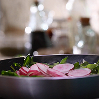 Add some butter to the pot, melt it, add the boiled okra, watercress, carrots, salt and mint in turn.