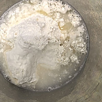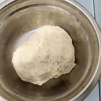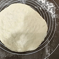 Take out the fermented dough and place it on a chopping board sprinkled with dry powder to round it, the dough is a little sticky, and it is easy to operate with some dry powder.
