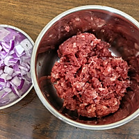 Finely chop the onion and chop the beef.