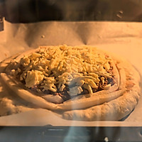A layer of mozzarella cheese is laid on the surface.