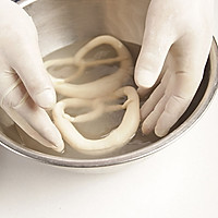 Place in the refrigerator for 20 minutes. (The purpose of freezing is to prevent the bread from deforming, and the frozen dough can fully absorb alkaline water.) )