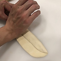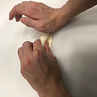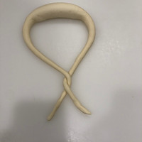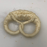The dough is formed directly after hardening, and different shapes and specifications can be made according to the desired product, here is a German bow tie as an example, rolling out the dough.