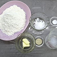 1. Group photo of dough materials; Dry yeast can be adjusted according to the temperature of the season, 2 grams can be put in hot weather, 3 grams can be put in cold or in a hurry, but the amount should not exceed 5% of the amount of flour, otherwise there will be a very strong yeast smell, not fragrant, and it will also cause rough tissues due to too fast hair;