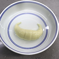 Put the bread blank into alkaline water and soak it for about 20 seconds on each side, the longer it is soaked, the darker the color of the bake, but the more bitter the taste becomes; If the green is not frozen and hardened, this step cannot be completed, and the dough will be deformed, so don’t be lazy in freezing;