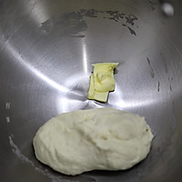 Place the ingredients except butter and baking salt into the kneading bucket; Whip at low speed to form a ball, then turn to medium speed, add butter when the dough is smooth and moist;