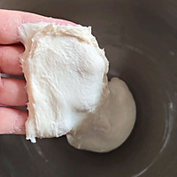 Add baking alkali to warm water and stir well. Put on gloves and soak the frozen dough for 30 seconds. Be sure to pay attention to safety and remember to wear gloves.