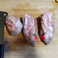 4 Remove the boiled pig’s knuckle through cold water, and then cut it with a knife as shown in the pattern