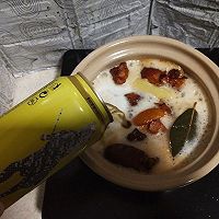 10 After scooping the pork knuckle into the casserole, pour in the prepared German beer, fill it with the ingredients, then add the ginger, salt and spices from the pork knuckle just now