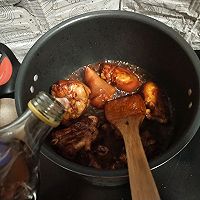 9 After the color is evenly colored, pour in the kitchen Huadiao wine, the flavor of the very fresh soy sauce, and the braised soy sauce to season and then remove it into the casserole