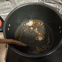 7 Pour oil into a hot pan, then add rock sugar and stir-fry until the sugar color is colored