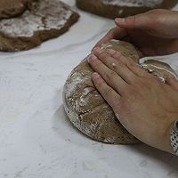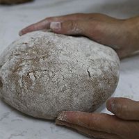 Reverse the dough, close the mouth down, gently fold the bottom of the dough, shape it into a circle, sprinkle rye flour on the surface of the bread, and place it on a high-temperature cloth or baking paper.