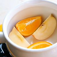 5 oranges and 5 apples put in a saucepan