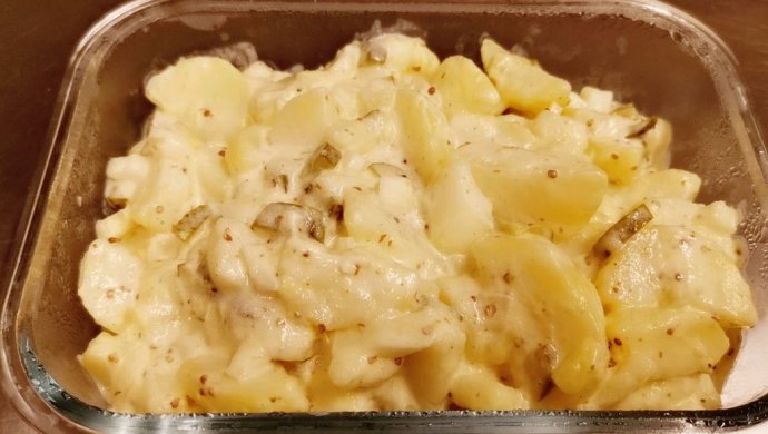 My husband lived in Germany for a while before, and there were several German foods that he missed, among which potato salad was what he always talked about, so I will try one today.