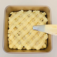 Brush the surface with whole egg liquid and cross-squeeze custard sauce.