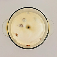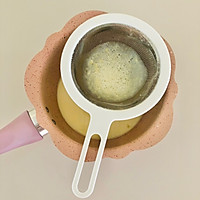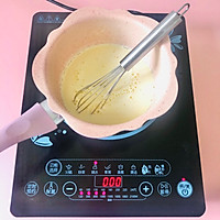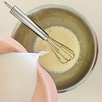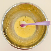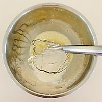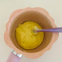 When it is fermented, we make custard sauce and puff paste. Make custard sauce first, add sugar to the eggs, mix well with a manual whisk, and sift in low-gluten flour.