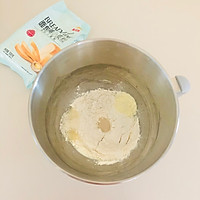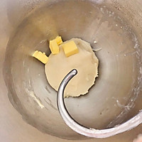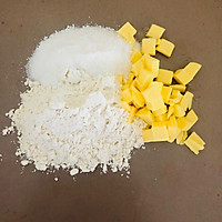 Then make the puff pastry, mix softened butter, powdered sugar, and low-gluten flour.
