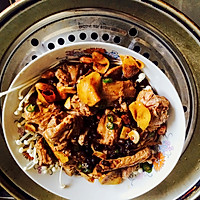Put the blanched water into a container (I have to emphasize that you must soak off the blood, be sure to blanch it, you can put some cooking wine to remove the fishy smell) Then, take another container, mix ginger slices, garlic slices, tempeh, rock sugar, various seasonings, the Japanese soy sauce I used, because the taste is softer, the dried chili peppers I put in the dried chili peppers I brought back from Chengdu, they are so fragrant…… Then pour it into the ribs and marinate overnight, two hours is fine