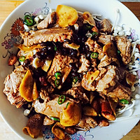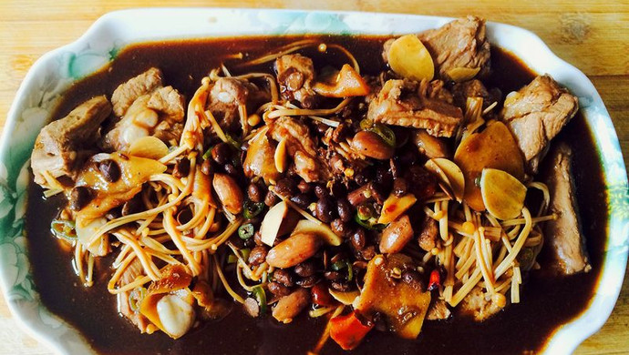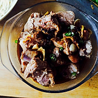 Put the blanched water into a container (I have to emphasize that you must soak off the blood, be sure to blanch it, you can put some cooking wine to remove the fishy smell) Then, take another container, mix ginger slices, garlic slices, tempeh, rock sugar, various seasonings, the Japanese soy sauce I used, because the taste is softer, the dried chili peppers I put in the dried chili peppers I brought back from Chengdu, they are so fragrant…… Then pour it into the ribs and marinate overnight, two hours is fine
