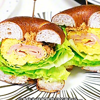 Ham thick egg roasted carnitine water bagel sandwich recipe