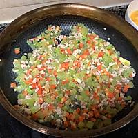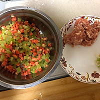 Stuffed meat, diced carrots and lettuce, and sliced green onions and ginger to taste