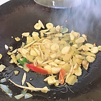 A large amount of ginger, garlic and ginseng are sautéed in a pot first
