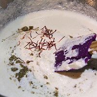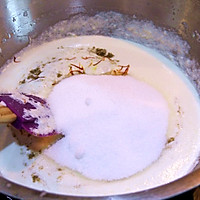Then add the saffron and cardamom seed powder and continue stir-frying to avoid sticking to the pan.