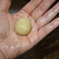 When the cheese is lukewarm, take it out and put it on the chopping board, spread a little butter in your palm and knead the cheese into a ball.