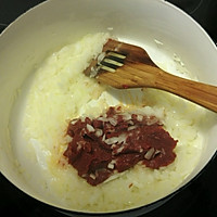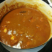 This process can be put oil, not water, it is best to choose a non-stick deep pot, let the spices fry until fragrant, blend, then add curry powder, continue to stir-fry over medium-low heat