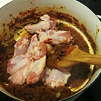 Salt to taste, stir-fry evenly, let the chicken wings are dipped in spices, cover, simmer for more than 5 minutes, the chicken wings begin to release fat, must be fried first, and then add water, the general Indian method will also use curry powder to marinate chicken nuggets in advance for an hour.