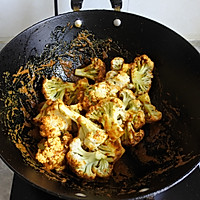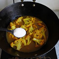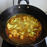 Then add water and cauliflower, turn to medium heat and simmer for about 15 minutes to ripen