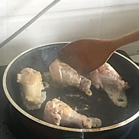 Pour oil into the pan, add the chicken thighs when the oil is hot, fry until golden brown on both sides, and pour in the prepared potatoes and carrots
