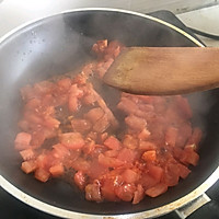 Peel the tomatoes and cut them into small cubes, add a little sugar, appropriate amount of hot water, stir well to form tomato juice, and also set aside.