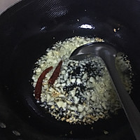 Add red pepper and garlic and sauté until the garlic turns yellow, over low heat