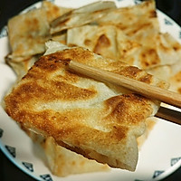 Then fold the other two sides, a flying cake is ready, put vegetable oil in the pot, and fry the flying cake in the pan until golden brown on both sides