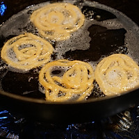 For the past 10 years, whenever I’m not particularly busy at work, I’ve made one or two Indian desserts for the holidays before Diwali. Two days before Diwali this year, I happened to be out of work, so I made this more complex fried donut Jelebi. The ingredients of this dessert are actually very simple, but it is a very difficult dessert to make, and I made it three times in two days before I was satisfied. Its difficulty lies in the temperature of the syrup and the gesture when frying the rings, which is completely a pure craft requirement! This dessert can be eaten hot or cold, each with its own flavor.
