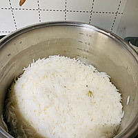 Use a leaking net to scoop the rice, take half of the rice, and spread it in a pot