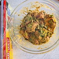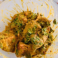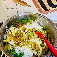 Add marinated meat: 60g ginger and garlic paste, 5g turmeric powder, 3g chili powder (if you can’t eat spicy, you can reduce it appropriately, or leave it out), 60g biryani powder, 200g yogurt, 35g chopped coriander, 4g mint crushed