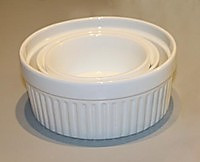 Preheat the oven to 300°C. Place four 6-ounce capacity shallow ceramic pudding cups on a baking sheet.