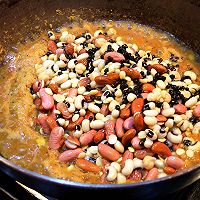 Stir-fry for 3-5 minutes, then pour in the beans and stir-fry for 5-6 minutes, adding 5 large cups of water.