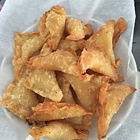Wrap the curry mashed potatoes in the wonton skin, seal the mouth, and press it with a fork. As long as it doesn’t leak out. Then put oil in the pot, fry until golden brown and the finished product.