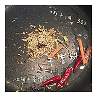 Take 30g of coconut oil from another pot, then add dry spices and sauté until fragrant.