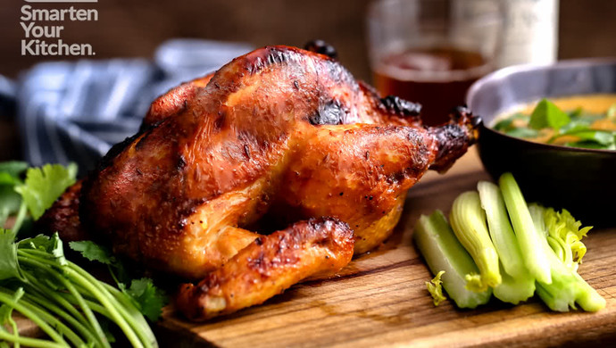 If the chicken butterfly is opened, the roast chicken bakes for about 30 minutes, and the whole chicken bakes for about 50 minutes. After the chicken is put into the oven, pay attention to observe the surface coloring of the chicken during the period, if the surface part of the chicken is too dark during the period, cover it with tin foil to protect it.
