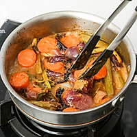 Put the roasted vegetables into the pot, stir-fry until the water is dry, add white wine, heat until the wine evaporates, add water, wait for it to boil, cover and simmer for 3 minutes, strain out the soup.