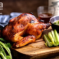 If the chicken butterfly is opened, the roast chicken bakes for about 30 minutes, and the whole chicken bakes for about 50 minutes. After the chicken is put into the oven, pay attention to observe the surface coloring of the chicken during the period, if the surface part of the chicken is too dark during the period, cover it with tin foil to protect it.