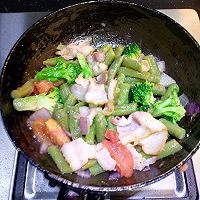 Sauté the bacon and vegetables with a little olive oil, turn off the heat and sprinkle with salt and mix well